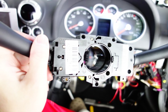 ウィンカーレバーと、ワイパーレバーは連結されているので、連結されたまま一緒に外していきます。