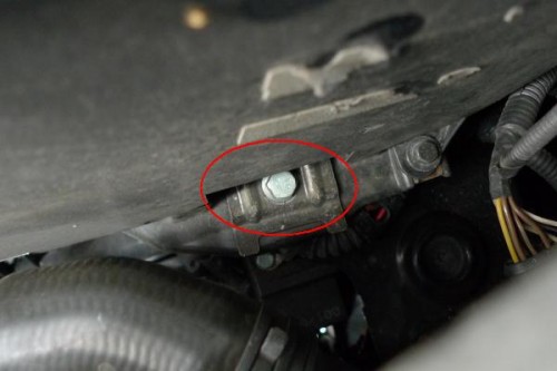バッテリー前方の下側にボルトで固定されたプレートがあります。